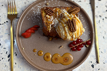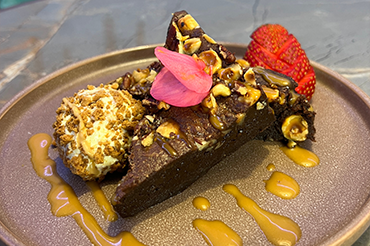 Le Brownie Gourmand de Bloomy, moelleux avec glace et nappage caramel beurre salé, une douceur à savourer pleinement.
