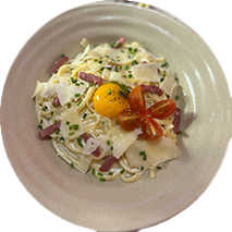 Rigatoni al dente avec une délicieuse sauce à la carbonara.
